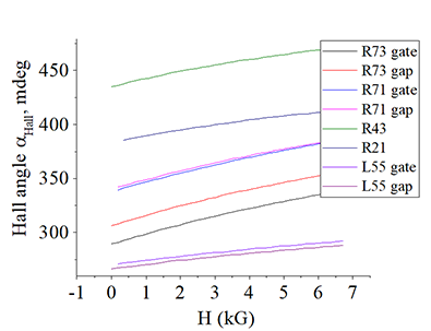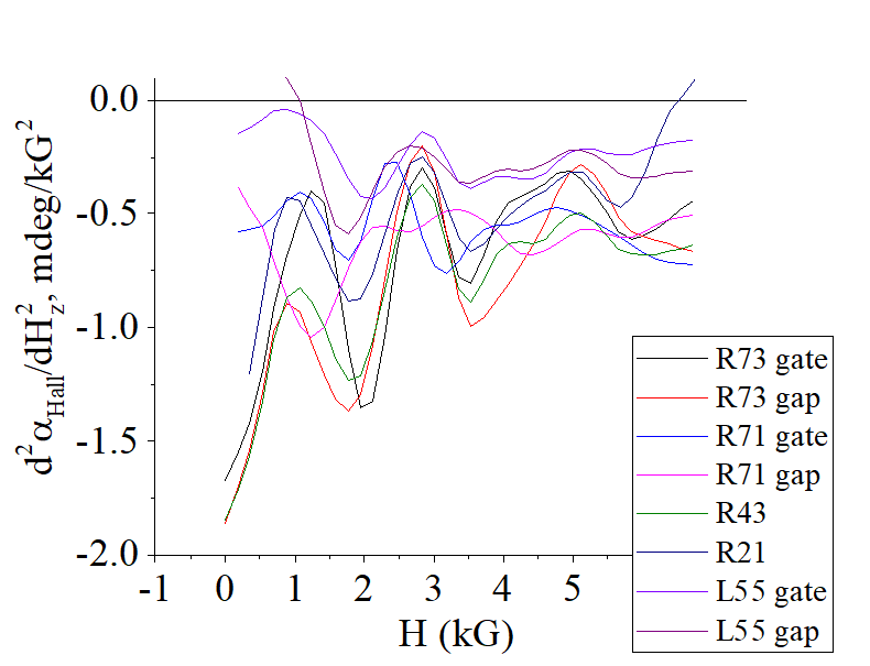 The Hall angle αHall , its 1st derivation ∂αHall/∂Hz and its 2d derivation ∂2αHall/∂Hz2 is simultaneously fitted by equation (See here)