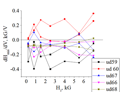 | Sample ud67, in-plane magnetic filed Hx is applied perpendicularly to current (Hx _|_ to current: 90 deg) | ||||||||||||
