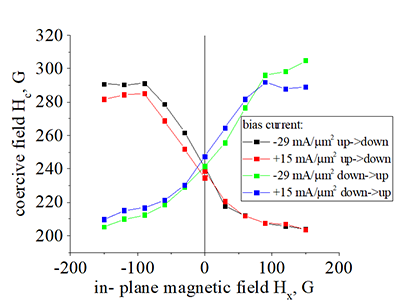 Current- dependence. SOT effect. Magnetization switching parameters under in-plane bias magnetic field Hx |