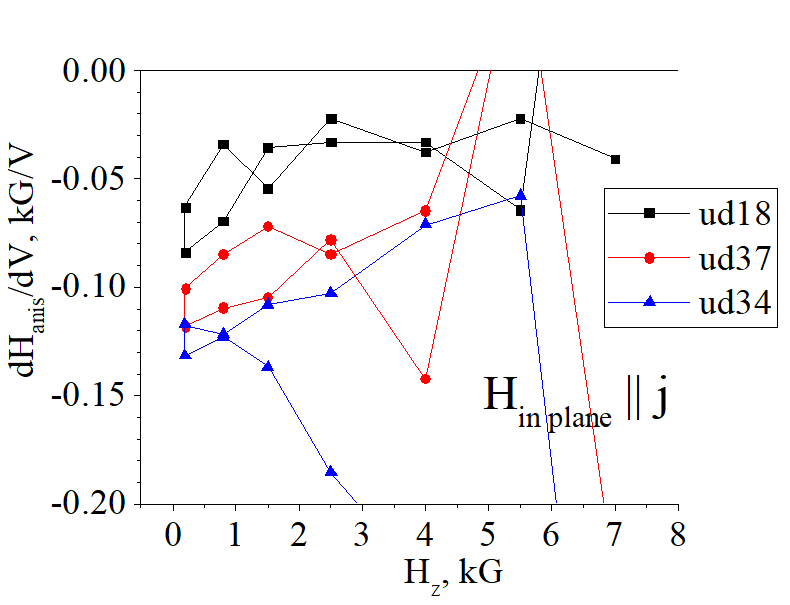 (AHE vs I2 ): strong 5% (sample ud34: 12%) decrease at current of 50 mA/ μm2; (fig.4a)