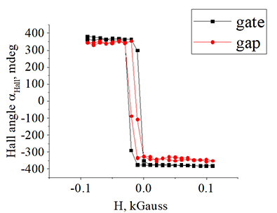 Volt 54B Ta(2.5 nm)/ FeB(1.1 nm)/ MgO(6 nm)/ Ta(1 nm)/ Ru(5 nm)Measurement of magnetic and magneto- transport properties of nanomagnets. Measurement data.Abstract:High- precision, high- reproducibility, high- repeatability measurement of magnetic and magneto- transport properties of ferromagnetic nanomagnets using the Hall effectHigh-precision measurement of effect of spin-orbit torque (SOT effect): Dependence of magnetic and magneto- transport properties on electrical currentHigh-precision measurement of effect of voltage-controlled magnetic anisotropy (VCMA effect): Dependence of magnetic and magneto- transport properties on a gate voltage