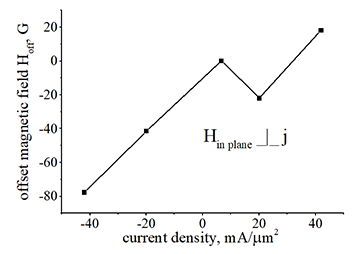 Spin-orbit torque. Measurement of dependence of anisotropy field Hanis and offset magnetic field Hoff on the electrical current j. |