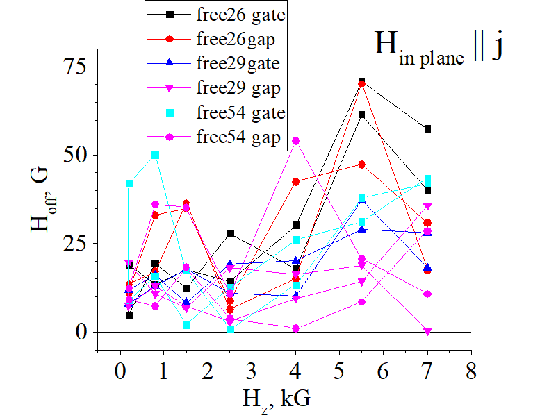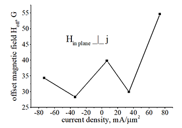 Spin-orbit torque. Measurement of dependence of anisotropy field Hanis and offset magnetic field Hoff on the electrical current j. |