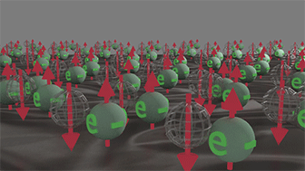 | arrows shows the spin-direction and the volume of balls is proportional to the number of the spin polarized electrons. The big ball shows all conduction spin-polarized electrons. | ||||||