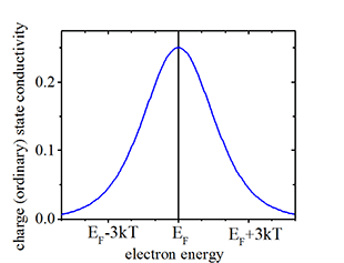 The ordinary conductivity significantly depends on electron energy (See Fig.20). The electrons at the Fermi energy are effective for the transfer of the charge. The state conductivity for them is highest. Above and below the Fermi energy the ordinary conductivity sharply decreases.
