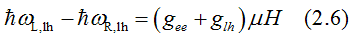 Note: in the case when g-factor for the light and heavy holes is the same, the MO transition energies for the heavy and light holes are the same. They are the same only in the case the approximation of fully- quenched orbital moment.