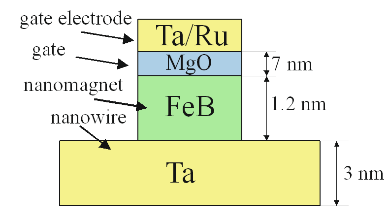 Ta/FeB nanomagnet with MgO gate and Ta/Ru gate electrode. click on image to enlarge it. |