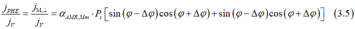 Assigning φ+Δ as angle between spin of localized electrons and current jV and φ-Δ as angle between spin of spin- polarized conduction electrons and current jV, the projection jAMR of magnetic current jVf, which flows along the wire and, therefore, parallel to the main current jV, and which defines the AMR effect, is calculated from Eq.(3.2) as