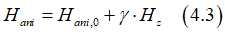 Without an external magnetic, the magnetization M is perpendicular to the film due to PMA. When external in-plane magnetic field Hext is applied, the magnetization turns. The magnetic field , at which the magnetization turns fully in-plane is called the anisotropy field |