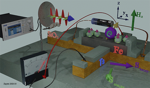 Method of zero- harmonic. RF measurements of magneto-transport effects. Ferromagnetic resonance. Spin and Charge TransportAbstract:In this method, the spin precession (e.g. Ferromagnetic resonance (FMR) ) is excited by illumination of sample by RF radiation. At resonance conditions, there is a magnetization precession and the magnetization direction changes with the RF frequency. It modulates the magneto- transport feature (e.g. Hall angle or magneto- resistance). In the case, when an additional magneto- transport parameter (for example, current) is modulated by the RF radiation, the frequency beating gives DC voltage, which is proportional to RF power. In this method, the features of the magneto-transport are evaluated from the DC voltage.Content