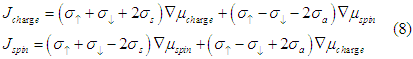 and spin and charge transport equations will be