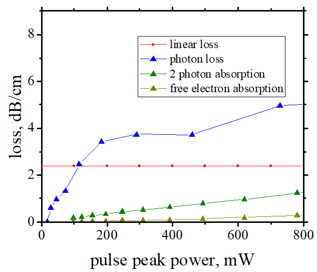 | Linear (red line) and Non- linear (blue and green lines) absorptions in a Si nanowire waveguide | ||||||