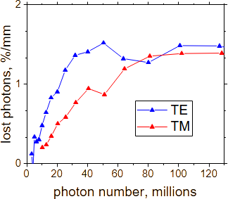 (fact): A key observation across all three measurement methods is that nonlinear loss for TM polarization is always substantially smaller than for TE polarization. This trend is opposite to that of linear loss: in our Si nanowire waveguides, the linear loss is about twice as large for TM as for TE.