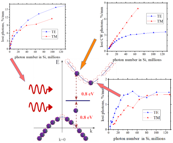 Si wire waveguidesThe two-photon absorption is a quantum process in which two photons are simultaneously absorbed, giving a valence-band electron enough energy to transition into the conduction band. This transition proceeds through a virtual state within the bandgap.page created in Dec. 2025