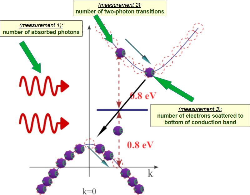 measurement 2: measurement of number of electron transitions from valence to conduction band due to two-photon absorption |
