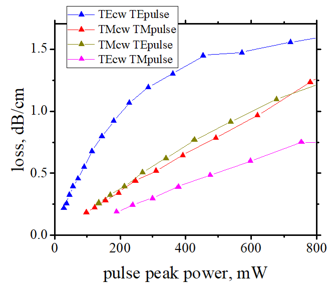 | Time-resolved optical loss of CW probe measured by high-speed optical oscilloscope. TE mode. pulse peak power 477 mW | ||||||