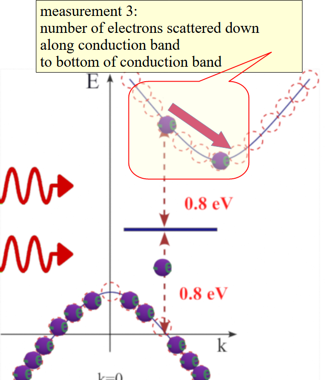 measurement 3: measurement of number of electrons scattered down along conduction band to bottom of conduction band plus number of holes scattered up along valence band to top of valence band |