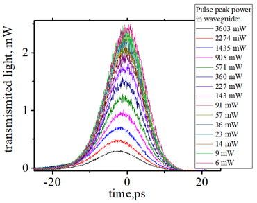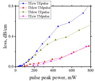 | Time-resolved optical loss of CW probe measured by high-speed optical oscilloscope. TE mode. pulse peak power 477 mW | ||||||